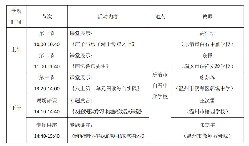 关于举行温州市王汉雷“名师送教”工作室第15次活动的通知