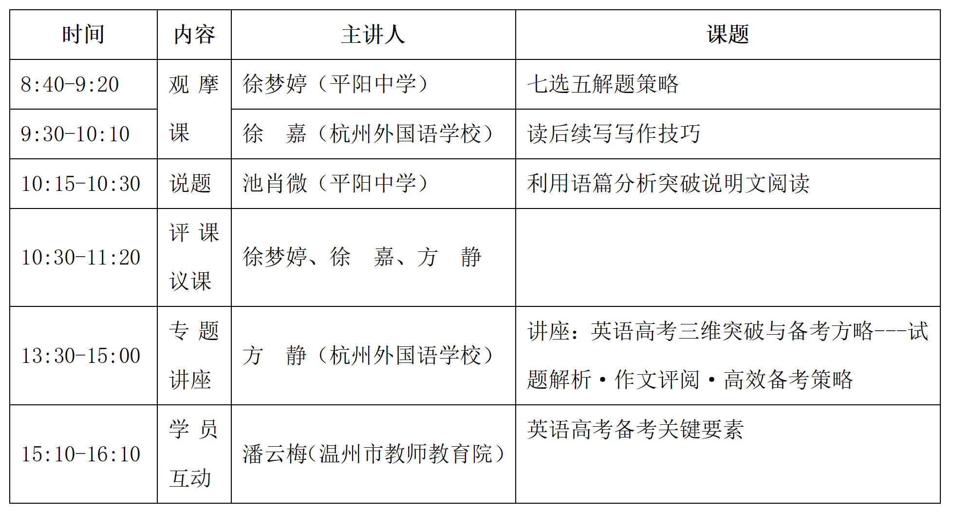 关于举行温州市 潘云梅高中英语“名师送教”工作室第10次活动的通知