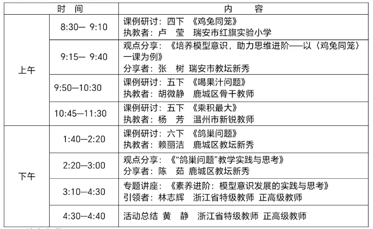 为提升教师专业素养,现决定举行温州市林志辉“名师送教”工作室核心素养导向下“模型意识提升”的专题研究活动。