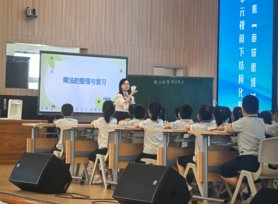 第三节课是由永嘉县上塘城西小学的刘苗苗老师执教《乘法的整理与复习》。刘老师以乘法口诀表格为切入点,引导学生观察横竖规律,梳理乘法知识脉络。学生通过“三五十五”这句口诀,用算式、画图、矩阵图等多种方式理解乘法意义。课堂还结合实际问题,深化对乘法意义的理解,帮助学生构建系统的乘法知识网络,提升了知识综合运用能力。